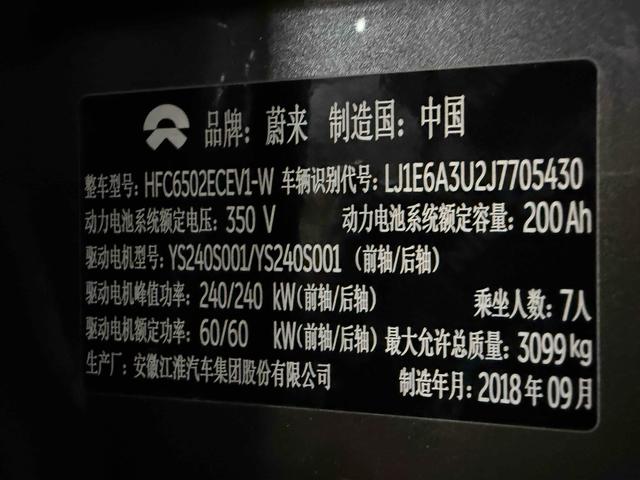1. Vehicle model: Pre-Owned NIO ES8 2018 Founding Edition